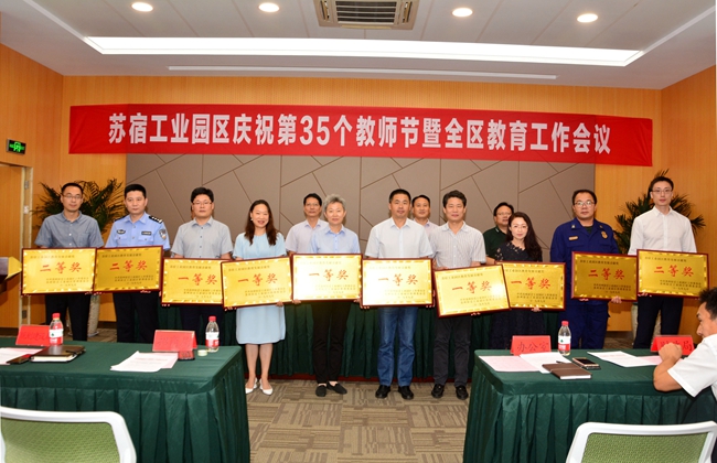 9月10日下午,蘇宿工業(yè)園區(qū)召開慶祝第35個教師節(jié)暨全區(qū)教育工作會議,開發(fā)公司喜獲園區(qū)教育發(fā)展貢獻一等獎。