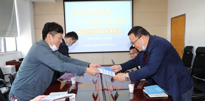 4月27日上午,正值第29個(gè)稅收宣傳月之際,宿遷經(jīng)濟(jì)開(kāi)發(fā)區(qū)稅務(wù)局張森局長(zhǎng)帶隊(duì)來(lái)園區(qū)開(kāi)發(fā)公司宣傳調(diào)研。