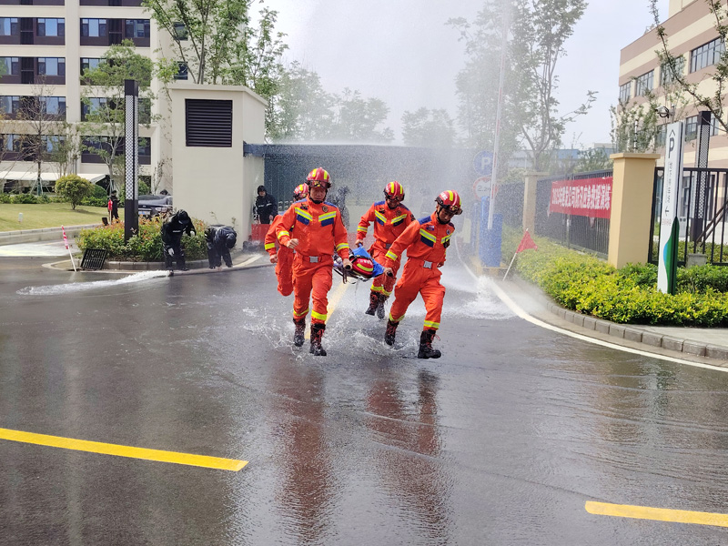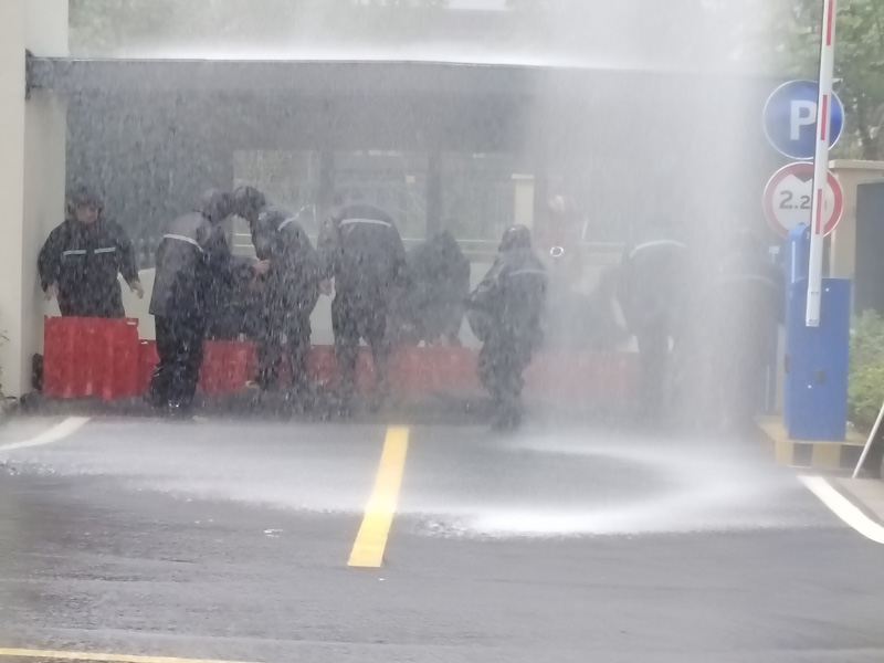 演練模擬受極端暴雨天氣影響,園區(qū)青年公寓出現(xiàn)嚴(yán)重積水、地下車庫被淹、樹木倒伏等復(fù)雜且具有挑戰(zhàn)性的防汛場景。公司防汛指揮部在接到險情報告后,迅速反應(yīng),第一時間啟動應(yīng)急預(yù)案。在總指揮的現(xiàn)場指揮調(diào)度下,應(yīng)急搶險隊伍迅速到達(dá)積水現(xiàn)場,隊員們熟練地安裝移動排水裝置,將路面積水強排至附近排水管道,快速緩解了路面積水狀況。對于地下車庫積水問題,同時對車庫內(nèi)的車輛進行有序疏散和安置,最大程度減少了可能的財產(chǎn)損失。演練過程緊張有序,各環(huán)節(jié)銜接緊密,各部門之間協(xié)同配合默契,充分展示城發(fā)公司應(yīng)對防汛突發(fā)事件的能力,實現(xiàn)了從預(yù)案到實操的無縫銜接。