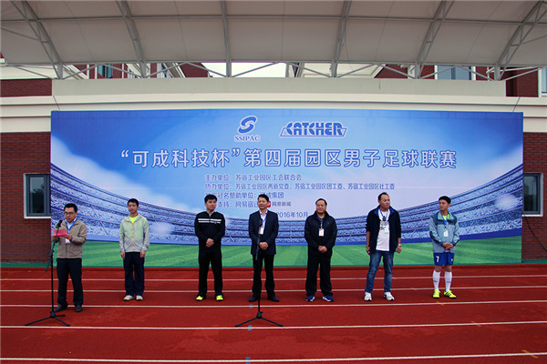 10月16日,“可成科技杯”園區(qū)第四屆男子足球聯賽在宿遷市蘇州外國語學校田徑場精彩開幕,園區(qū)黨工委委員、管委會副主任戈亮出席開幕式并致辭。